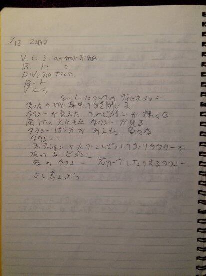 黒野忍さんが、IOTに在籍して修行した時期の、魔術実践記録(魔術日記)、直筆です。