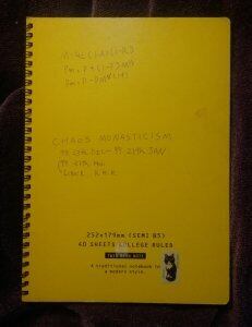 複写本ではなく、黒野忍さんが修行の傍記録した、直筆の原本です。写真のノートいっぱいに、魔術日記が綴られています。